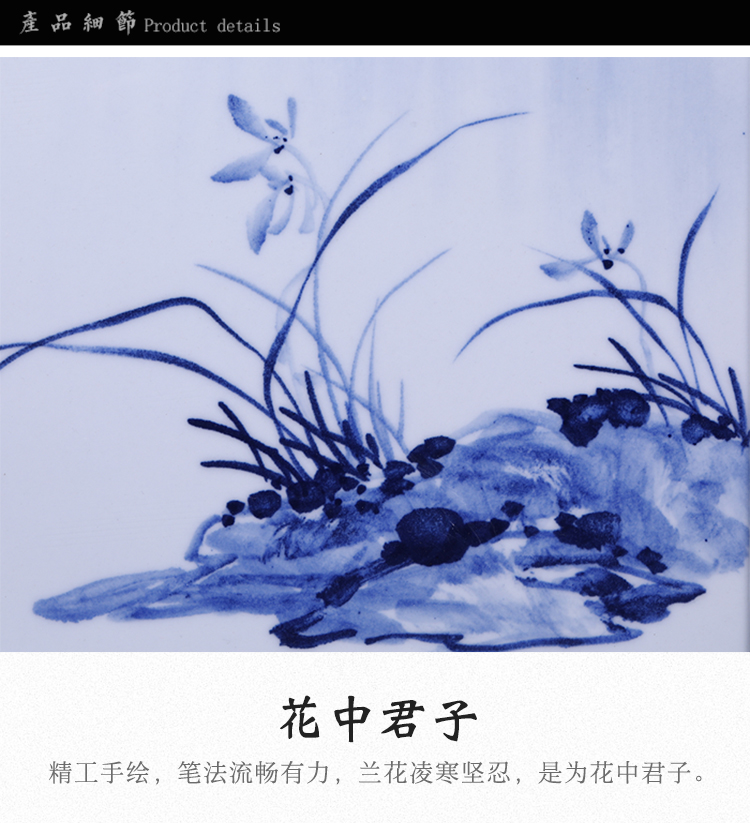 陶瓷瓷板畫禮品 蘭花青花瓷瓷板畫