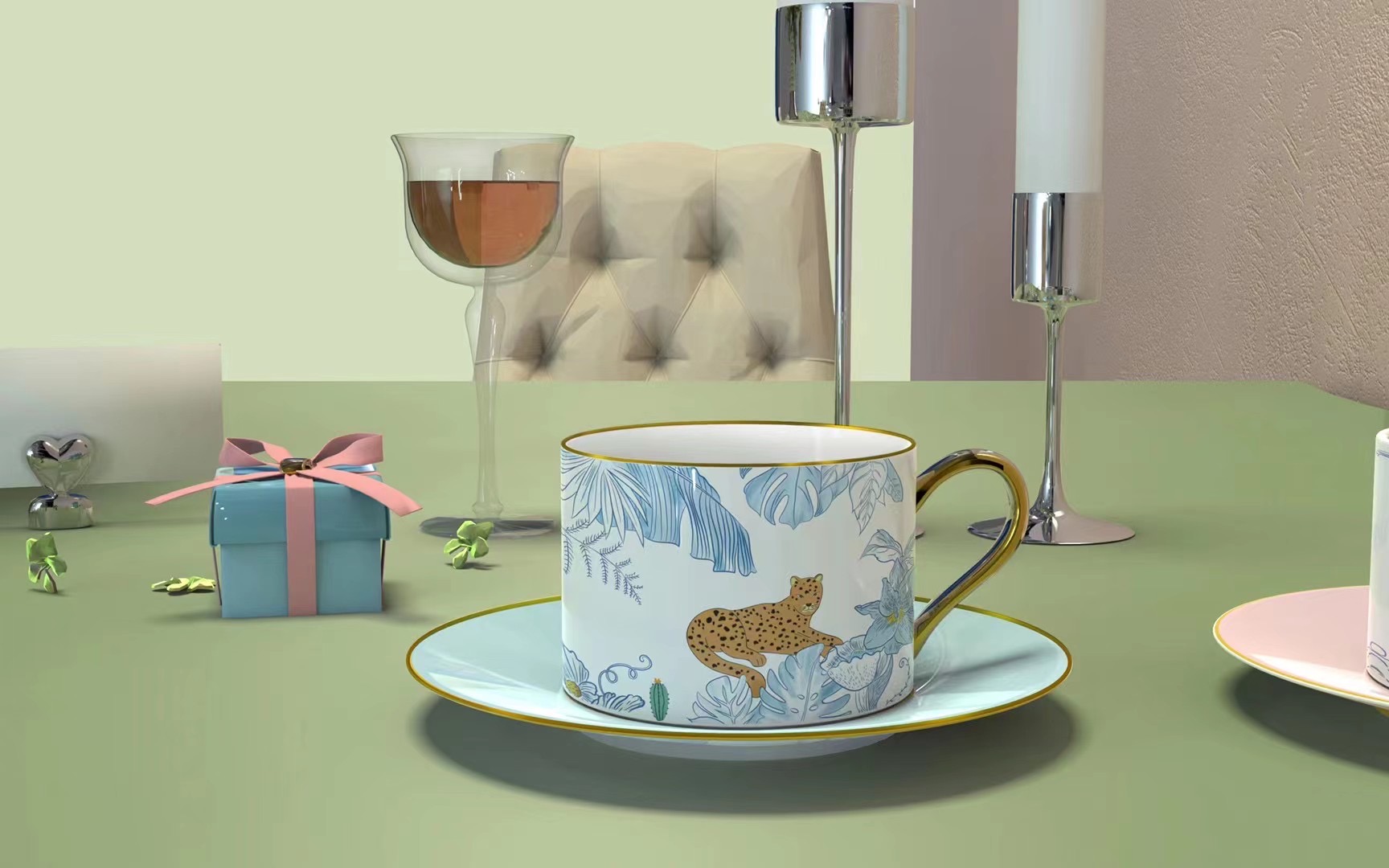 描金豹子陶瓷咖啡機帶杯碟