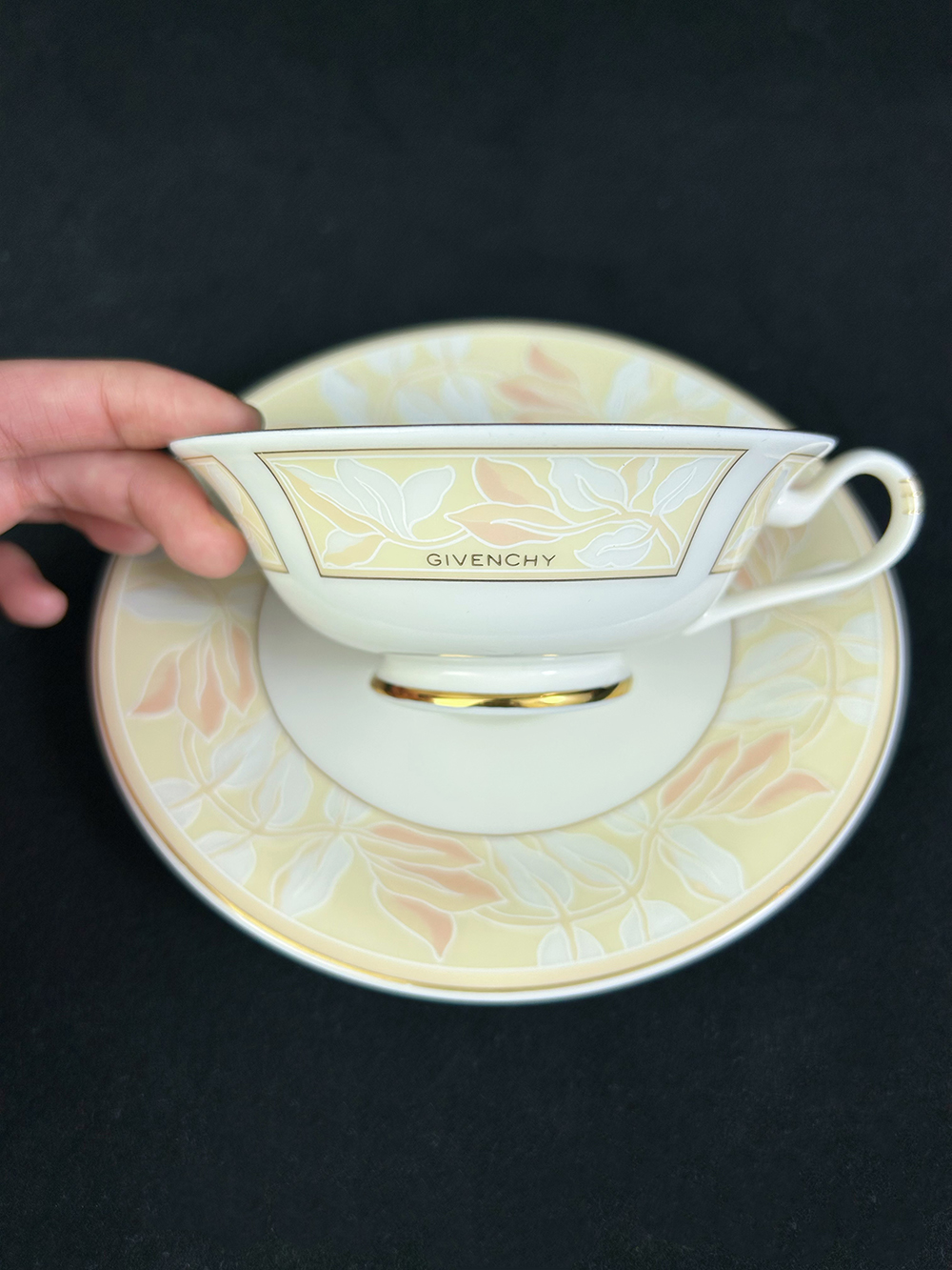 紀梵希(Givenchy)是法國的高奢時裝品牌,隸屬于法國LVMH集團,主營高級服裝定制、成衣、鞋履、皮革制品及飾品,由于貝爾·德·紀梵希(Hubert James Taffin de Givenchy)以自己名字在1953年創立。紀梵希找到我們,想要定制一批咖啡杯,經過不斷設計調整,最終選定,下面是產品的實拍圖: