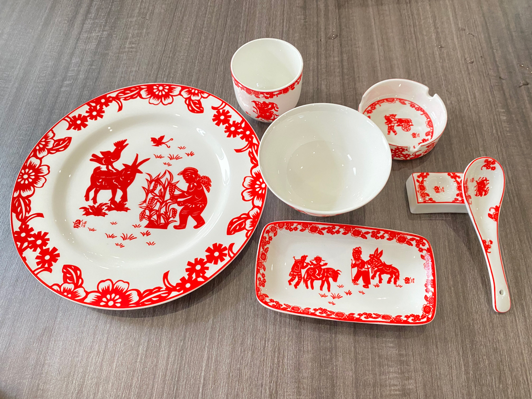 中國紅剪紙酒店餐具案例