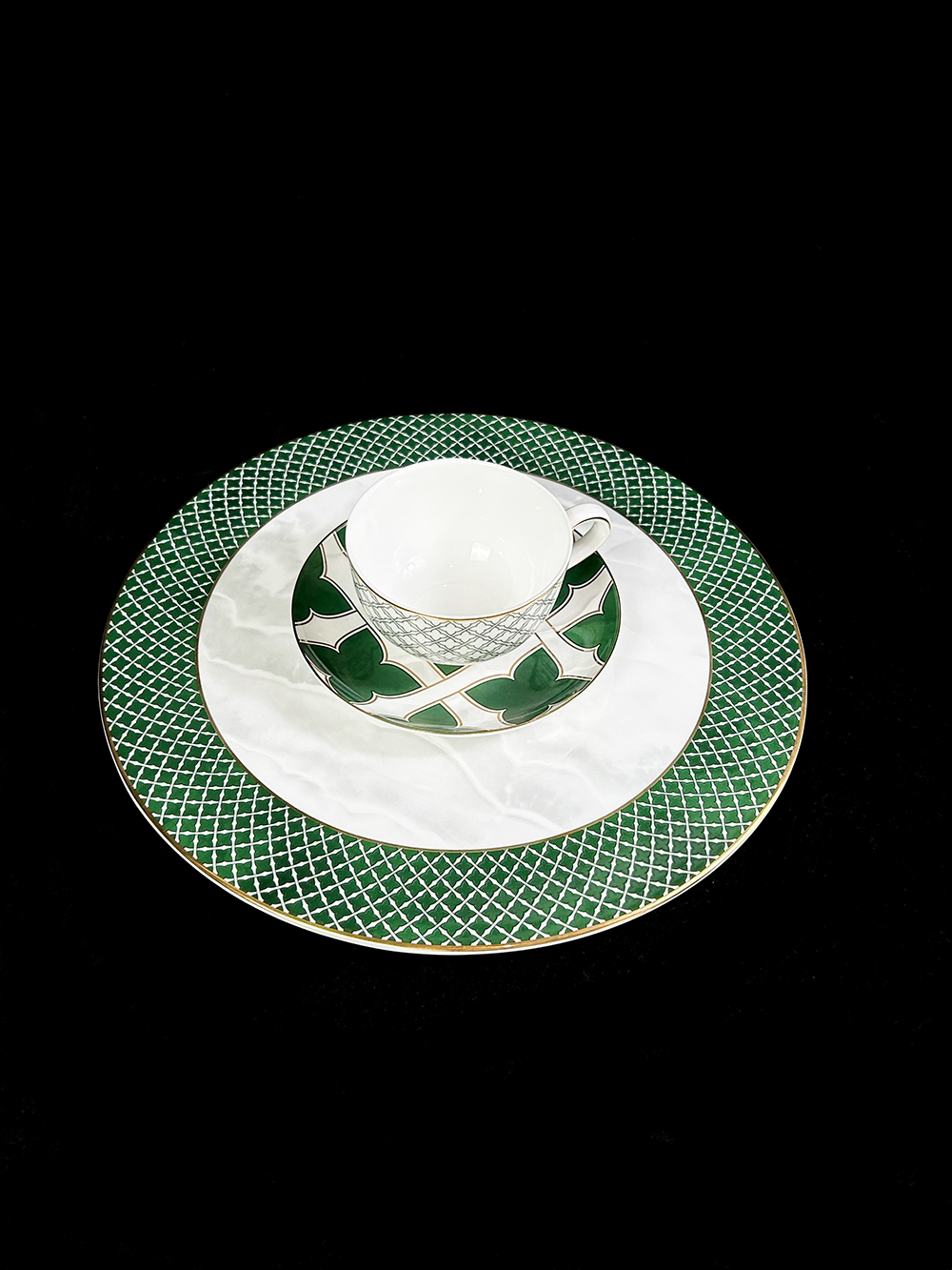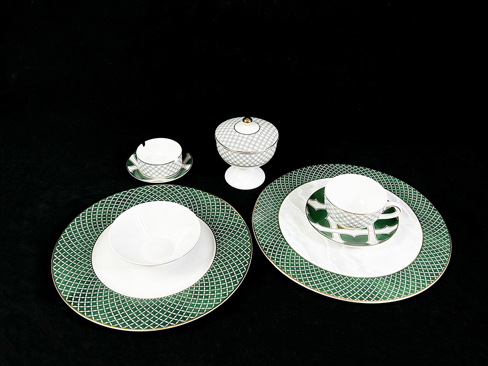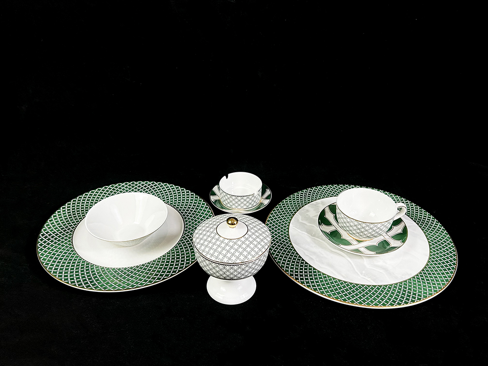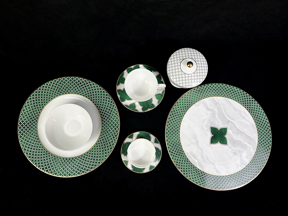 客戶定制 經典網紋陶瓷描金四葉草餐具