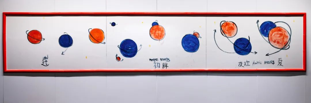 法布里斯說:“我意圖將法國和中國描繪成兩顆行星,彼此相隔甚遠,但始終圍繞著對方運轉:這正是友誼。”這便是《友誼》作品的創作靈感所在,作品中紅藍兩行星分別象征中法,寓意兩千年友誼。它們在宇宙中旋轉相遇,象征兩國文化交流。